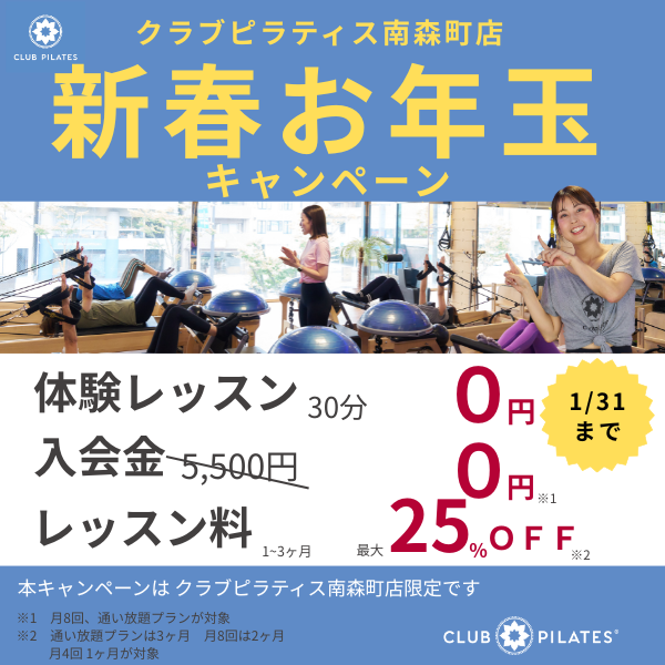 CLUB PILATESのクラスのご紹介などを行いますので、受講時間20分前のご来店をお願いしております。