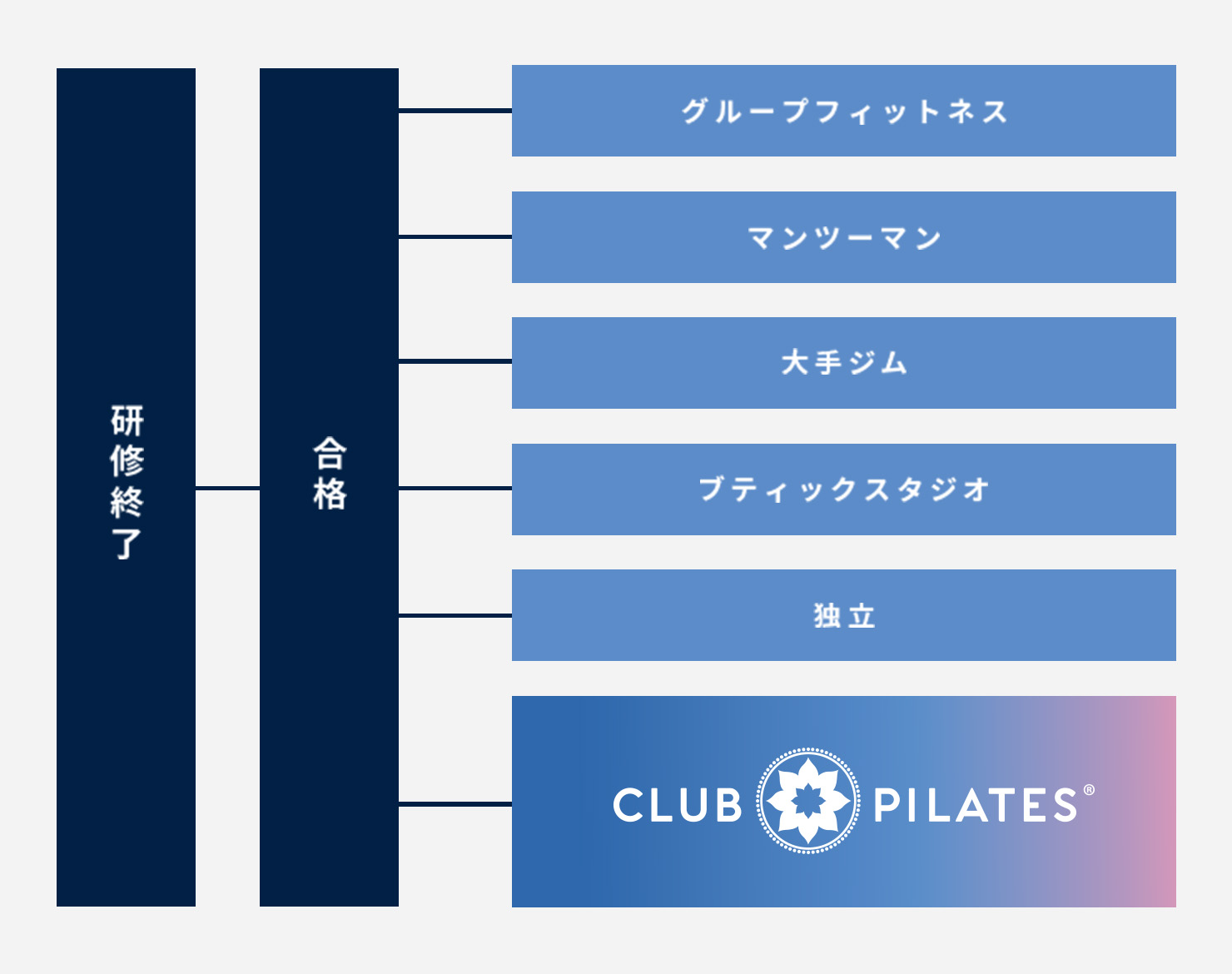 インストラクターの資格を取得された方の働き方として、CLUB PILATESのスタジオもおすすめしています。