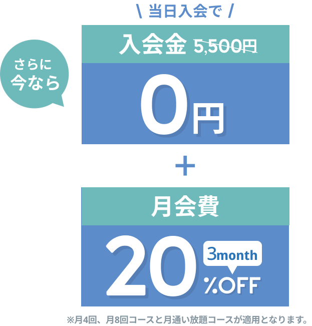 - 各プランの最新の料金は会員数の状況によって変動する可能性があるため、直接店舗にお問い合わせいただくか、無料体験レッスンの案内時にご確認ください。